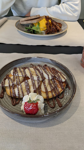 Read moreUna colazione davvero ottima nel complesso, peccato che abbiano dimenticato di portarci il bere. I pancake e le uova strapazzate con bacon e pane tostato erano davvero buone ma ragazzi, non si può portare il caffè e il latte e spremuta dopo che il cliente ha praticamente finito di mangiare. La cameriera mi ha risposto "ah no ma noi li portiamo sempre dopo pensavo ve l'avessero detto.." quando sugli altri tavoli le bevande erano già state servite insieme al cibo. Il senso di portare il caffè dopo che ho finito di fare colazione? boh.. Davvero una pessima scusa. Arrivate le bevande, il mio compagno ha mandato indietro il latte perché giustamente non ne aveva più voglia e la cameriera disse ce l'avrebbe tolto dal conto. Usciamo dal locale ed il latte ce l'hanno fatto pagare lo stesso... bah! Cibo ottimo ma...