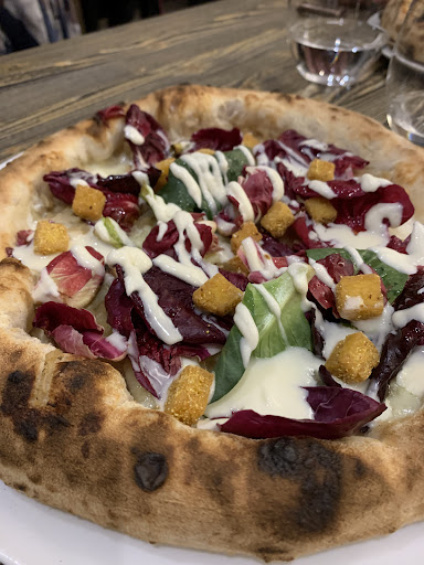 Read moreSono stato incuriosito da un articolo che ne parlava in modo estremamente positivo (visto il periodo forse dovevo usare un altro aggettivo...ma manteniamo questo come spoiler), sia delle pizze che del locale. Ma ne sono rimasto ahimè deluso. Ma andiamo in dettaglio. Location carina anche se trovo imbarazzante un unico bagno condiviso uomo donna (ok siamo nell'epoca gender fluid, ma la tavoletta del wc sporca può capitare pure da Cracco...e mi limito a questo). Avevamo prenotato ed al nostro arrivo il tavolo non era pronto e abbiamo dovuto attendere una decina di minuti all'ingresso. Materie prime di qualità, si sente, ma niente che mi abbia fatto sgranare gli occhi gridando al "miracolo" dei sensi. Pizza normale, di dimensioni contenute (rischi di uscire con la fame), la mia un po' troppo secca dove non c'era il formaggio, quella di un paio di amici leggermente molliccia e cruda (per 22€ gradirei la pizza perfetta). Perlomeno non era bruciato il fondo. La casa cerca di offrire uno stile un po' ricercato, tipo da ristorante di lusso, non proprio consono a mio avviso, in una piccola pizzeria.come ad esempio degli assaggi gourmet ad inizio/fine pasto (in assoluto la cosa migliore della cena sono state le spumiglie alle nocciole) ed il versare acqua non ordinata (ma pagata) al tavolo. Approposito di versare le bevande...ho trovato buffo che mi venisse versata la birra in lattina (no scusa...6,5€ di birra chiara in lattina...sorvoliamo) e per buona parte di essa, la cameriera, la versasse sul tavolo. In definitiva, pizza buona, ma niente per cui tirarsela tanto. Location carina, ma forse per le aspettative che mi ero fatto, mi sono trovato deluso.Birra buona e servizio cortese e sopra le righe, come sopra le righe é stato il conto. Circa 28€ a testa (compresi i commensali margherita e birretta media e ben 3€ di coperto), decisamente troppo. Almeno a quel prezzo, ho pensato, avrà un altissima qualità e digeribilità...invece eccomi a scrivere dopo una notte di sudore e di pellegrinaggi verso la cucina a bere acqua, cercando conforto nella Madonna, dopo averla tirata più e più volte....