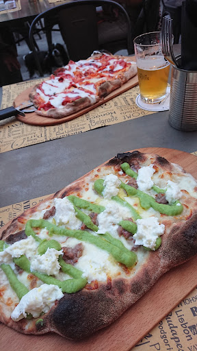 Pizza was amazing. They don't offer standard pizzas, the dough was nice and crispy and elliptical instead of round and soft that you can usually find in a Neapolitan pizza. Also toppings aren't what you usually find in a pizza place, they are new and thought out very well. We ate no2 rossa which was tomato sauce, mozarella, mozzarella buffalo, prosciutto crudo and caramelized onions (the combination of onions and prosciutto played very nicely with each other and the buffalo contrasted making the whole experience interesting - something rarely provoked by a pizza; also the tomato sauce was nice - there wasn't much of ot which made the dough crispy through the whole eating of the pizza, but it was tomatoy enough to feel it and not be overwhelmed by it) and the other pizza was seasonal menu with pulled pork, Parmesan foundi and potato chips (it was very intense, cheesy and flavorful, any enthusiast -or not- of pork would love it).