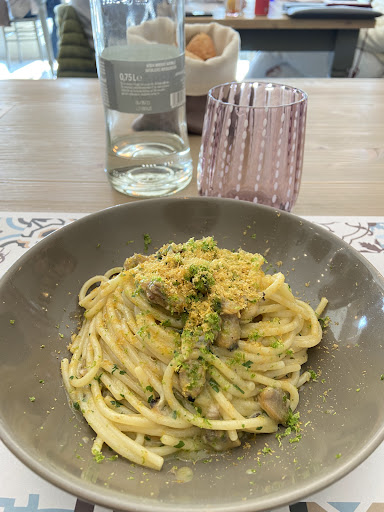 Ho iniziato a frequentarlo un paio di anni fa consigliato da un mio collega che già lo conosceva e adesso (piuttosto spesso) passo prendo ciò che vedo (tanto è tutto buonissimo) cambio ogni volta, moscardini, bomba, panfish, ricciola a crudo, ombrina, branzino, lasagnette di pesce, gamberi e guanciale... mi fermo qui ma potrei andare avanti mezz'ora.