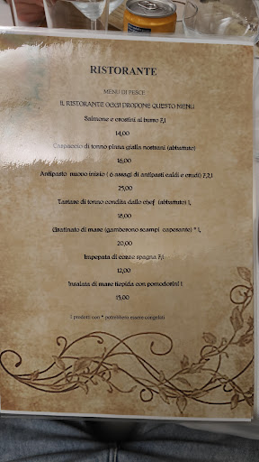 MENU: 🌟🌟 Il menu è un po' kitsch: quattro o cinque fogli A4 plastificati, stampati solo su un lato, con un font per nulla elegante. Prezzi ben esposti, assenti le spiegazioni degli ingredienti (ma presenti le annotazioni sugli allergeni). Si poteva sicuramente fare di meglio.