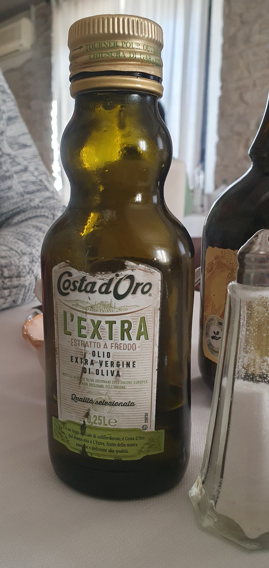 Ho fatto presente alla titolare/addetta alla cassa (dopo che aveva urlato in cucina a qualche collaboratore e tutti la sentivano) che non possono ingannare i clienti spacciando olio di bassa qualità per olio extra vergine di oliva e risponde stizzita "non le è arrivato quello giusto?". Le rimarco la pericolosità per i clienti allergici di questi inganni, essendo io allergica ad un olio specifico, e la signora girando le spalle mugugna qualcosa del tipo "ma non si può!"). Ma il "NON SI PUO' tirare in giro la gente", lo dico io.