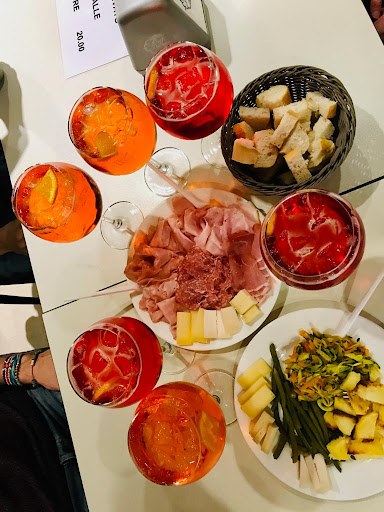 Read moreLocale sotto i portici di abitazioni. Piccolo ambiente con ampie vetrate e d estate mette i tavolini fuori sotto i portici. Esteticamente Nulla di particolare. Locale conosciuto per i taglieri inclusi nel prezzo che accompagnano il drink. Peccato che sia quasi tutta mortadella🙄. Il tagliere viene portato e nn si ha la possibilità di prendere altri salumi se non con pagamento aggiuntivo. Nella media non male anche perchè uno dei pochi che non offre solo le solite patatine. Età dai 22 ai 45. Va bene x un' uscita conoscitiva ...
