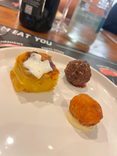 Read moreSiamo andati con un gruppo di amici per cena. (8 persone) Ci hanno detto che essendo così tanti dovevamo fare il menù e non si potevano scegliere tagli diversi per non andare ad intaccare la qualità della carne, quando non credo proprio che in tutta sera con tutti i clienti abbiano usato esclusivamente una piastra per ogni tavolo. Alle tante ci hanno concesso di fare almeno 2 tipi di tagli: T-bone per 6 persone wagyu king river 2 persone (17€/hg) Dato che erano così minuziosi, mi aspettavo come normalmente sono abituato che in un posto del genere mi portassero al tavolo i tagli prima di metterli sulla piastra, per farceli vedere, dire il peso e per chiederci se andavano bene. Cosa che invece non è accaduta. Antipasti buoni, in particolare la polenta con il lardo, materia prima davvero ottima, si scioglieva in bocca lasciandosi in estasi per il sapore. Per il wagyu invece devo dire che era molto morbido ma poco saporito. Essendo un’amante della carne e avendone assaggiate di molti tipi, se devo fare un recap della cena in generale, per quanto ho speso mi...