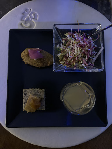 Food: This is where Shakti shines. Every dish was plated like Michelin quality art and also tasted amazing. Each dish was completely different with flavors and textures while not being too fussy. One of the problems we have with a lot of Michelin fine dining is they turn everything into a mousse, foam, or creme and you never have to chew anything. Shakti does it right by giving you the creme with the crunch and all super healthy without all the oil. We left feeling light and refreshed. The set menu changes often so you'll likely get something different our courses were: 1. Falafel bite, homemade "cheese", and a small salad. 2. The world's best millet gnocchi bolognese. 3. Crepe with pesto green beans. 4. White bean and zucchini cake. 5. Mille-feuille