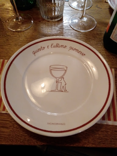 I was in Brescia with friends this September and we went along to a couple of wine tastings. We have been to other branches in Italy but felt really at home in Brescia. The staff looked after us really well particularly Gianluca. We had a regional frizzante wine tasting for lunch with the Antipasti boards of meats & cheese breads and fried vegetables. It was delicious and Gianluca was very knowledgable and informative. So we decided to go again on our last night in town for a red wine tasting again with the tasting boards. It was busier but we still felt we got great food wine and attentive service. For me it was an opportunity to taste some great quality wines without waste and for a reasonable price accompanied by good food and company in a lovely atmosphere with fabulous decor -loved the plates with funny adages ! Hope we pass...