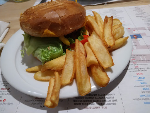 Camerieri incompetenti… abbiamo dovuto chiedere più volte ai camerieri le posate e i tovaglioli, son tutti sbrigativi ed alcuni super maleducati. Un signore in divisa nera ci ha portato un piatto e alla nostra richiesta di avere un’ulteriore bottiglia d’acqua ci ha risposto con “ No “ facendo uscire una bella filatelia di birra/alcohol. Appena arrivata ho chiesto ad una signora con la maglia nera che stavo cercando altre due ragazze che si erano appena sedute e che fuori non le vedevo “ se non sono fuori sono dentro andate a vedere “ ed ha girato i tacchi. Questa signora è anche quella che stava mangiando e non calcolando un un ragazzo che aveva evidenti problemi con la cassa, imbarazzante il fatto di non poterci pagare uno per uno la nostra parte ma solo il totale diviso i partecipanti. Il ragazzo ha provato alcune volte a chiamarla imbarazzato senza ricevere risposta. Piatti nulla di particolare avrei gradito che il mio piatto potesse arrivare con gli hamburger degli altri e non 15 minuti prima, ma forse era chiedere troppo.