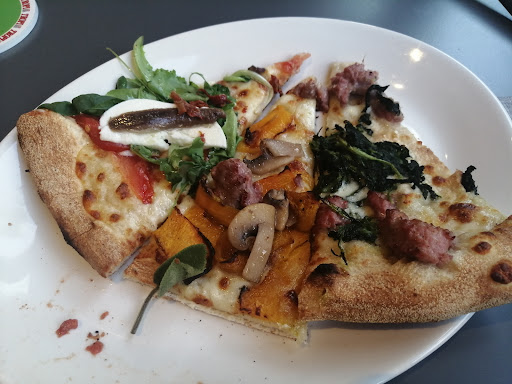 Non si può che dire di bene di questo posto: il personale è cordiale e sempre disponibile anche se la pizzeria è piena, inoltre il giro pizza è ciò che di meglio ho testato: l'impasto delle pizze è ottimo, sia quello tradizionale che quello integrale o fatto con altri cereali, e perfettamente digeribile. Altro punto a favore di questa pizzeria è che puoi scegliere la pizza che vuoi, dei gusti che ti piacciono, ti mangi una fetta sempre calda, (Cosa che con una pizza tradizionale non è possibile, dato che si arriva in fondo che è quasi fredda) e quando non ce la si fa più gli si dice "basta" e nessuno ti viene a disturbare. Anche le varietà di pizza sono ottime: si spazia dalle tradizionali alle più stravaganti, ma sempre guarnite con sapienza e mai troppo "pesanti". A parte alcune sere dove c'è una sorta di tematica, e quindi le pizze arrivano con alcuni ingredienti fissi, le varie pizze che ti propongono durante il giro pizza possono essere adatte a tutti: carnivori, vegetariani e, sì, anche vegani. E poi, non ultimo, volete mettere di avere un fetta calda di pizza sempre lì nel piatto pronta, dato che passa un cameriere in media ogni minuto e mezzo a proporre la pizza, invece che dover aspettare non poco prima di vedersi arrivare ciò che si è scelto? Anche l'acustica del locale è stata ben studiata: anche quando è saturo di avventori, si riesce comunque a dialogare tranquillamente senza dover strillare per farsi capire e, non meno importante, non si ha nelle orecchie un fracasso a tutto volume, che oggi definiscono musica, tanto da non riuscire neanche a capirsi. CONCLUSIONI: sono ormai anni che frequento questa pizzeria e continuerò a farlo finchè la salute me lo permetterà; consiglio anche a voi di provarla se non lo avete ancora fatto: ne resterete di certo soddisfatti. P.S.: se siete una compagnia numerosa di più di 10 persone vi consiglio di prenotare, altrimenti nei giorni e orari clou c'è talmente tanta gente in attesa di godersi le pizze che rischiereste di andare a dormire prima di avere a disposizione...