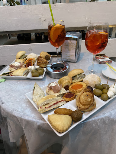 Ordino un paio di spritz e poco dopo mi arrivano due piatti carichi di stuzzichini….Fin qui tutto bene. Finiamo i piatti andiamo a pagare. Ebbene due spritz 21 e qualcosa €. Chiedo sbalordito e la risposta è stata che noi avevamo chiesto due aperitivi che per loro vuol dire portarti senza chiedertelo 2 piatti di stuzzichini (quasi tutto surgelati) e altri fatto con avanzi di giornata del banco alla Modica cifra di 7€ l’uno!!!! Bene signori….sarebbe il caso voi imparaste a fare bene gli spritz ed essere più chiari o mettere dei cartelli prima di “truffare” la gente con questi escamotage……comunque non è più un problema mio perché non mi vedrete...