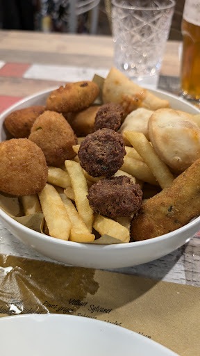 Read morePer una serata diversa io e il mio fidanzato ci siamo fatti un giro su Brindisi e andando all'avventura abbiamo trovato questo locale dove soffermarci per cenare. L'ingresso si presenta abbastanza luminoso e l'interno del locale è davvero caratteristico dal tavolo colorato alle bottiglie di vino "sparse" per il locale,forse unica pecca lo specchio per terra nel bagno. Aprendo il menù i prezzi a mio parere sembravano abbastanza alti, abbiamo ordinato come antipasto un mix di fritture che comprendeva: polpette,patatine, crocchette e panzerottini (piccola precisazione sul menù c'era il prezzo di 6.50€ ma sullo scontrino è comparso 8€ sicuramente il menù non era aggiornato) in seguito abbiamo ordinato una pizza capricciosa 7.50€ e una pizza wrustel 6.50€ acqua 2.50€ e coperto 2€ , nonostante inizialmente i prezzi sembrassero abbastanza alti la qualità era ottima,gli ingredienti che erano sopra la pizza erano molto soddisfacenti. Inoltre, il cameriere è stato abbastanza gentile e disponibile con noi, ci ha trovato subito un posto nel locale e nonostante facesse molti "avanti e indietro" per il locale era sempre attento su tutto, se ci dovessi ritornare spero di ritrovare la stessa qualità dei prodotti e la stessa gentilezza...