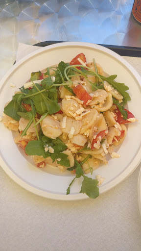 Sono stata in questo posto solo perché fortemente consigliato ma in realtà sono rimasta delusa. Nella parte interiore secondo me, il bancone è organizzato male poiché vassoio e quant altro sono disposti sullo stesso lato dei condimenti e non si capisce da quale parte andare infatti per sbaglio ho preso il vassoio utilizzato invece di quello pulito, ma vabbe, errore mio. Se la fila inizia dai contorni in senso orario e poi termina alla cassa, mi aspetto che i vassoi puliti siano alla sinistra, dove inizia la fila! Altra nota negativa.... La spazzatura attaccata al bancone!!!!! Le pietanze non sono state di mio gradimento ne della mia collega che ha preso cose differenti. Il primo piatto era insapore e il secondo era pesantissimo. Risultato? Io e la mia collega abbiamo passato tutto il pomeriggio con dolori di pancia e di intestino! Sarà un caso? Non saprei ma di sicuro non ci tornerò! Spero solo sia stato...