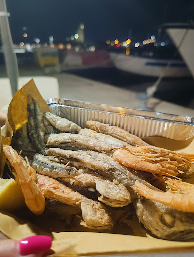 Read moreIn una location incredibilmente suggestiva, al Villaggio dei pescatori di Brindisi, questo locale completamente all'aperto vi lascerà a bocca aperta! Proprio sul porto, con un panorama mozzafiato (e anche luminosissimo, è arrivata la ruota panoramica coloratissima) potrete gustare fritture di pesce cotte a regola d'arte, croccantissime, asciutte e bollenti, squisite patatine fritte fatte da loro, panini con il polipo (dai gusti più tradizionali ma ma anche con accostamenti più audaci e moderni). Un luogo imperdibile dove è meglio prenotare e dove è vietato avere fretta 😃 infatti anche se prenoterete dovrete fare la fila in cassa per ordinare e solo dopo vi potrete accomodare al tavolo (chiameranno io vostro numero col microfono) ma davvero ne vale la pena! Il panino arriva un bel po' prima delle fritture quindi per ingannare l'attesa è un'ottima idea. Il mare ti entra davvero dentro, la location è stupenda e il cibo buonissimo proprio nella stupenda zona dei pescatori brindisini! Andateci, tappa estiva...