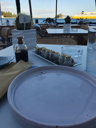 Sapido zostało nam polecone przez Marco, który w Brindisi wynajmował nam mieszkania. Podkreślił, że na rybę oraz białe wino z ładnym widokiem, to tylko tam. Kierując się jego rekomendacją, udaliśmy się do tego lokalu na kolację. Przyszliśmy bez wcześniejszej rezerwacji, chwilę po otwarciu i byliśmy pierwszymi gośćmi. Dostaliśmy 4 osobowy stolik, ale widzieliśmy, że jest sporo rezerwacji na ten wieczór. Siedliśmy obok zadaszonej części, bo ta zadaszona miała raczej widok na zacumowany duży jacht, który zasłaniał widok na wodę. To był już nasz szósty dzień w Apulii, więc chętnie zrobiliśmy sobie w Sapido przerwę od makaronów. W ich karcie dominują ryby, włączając te podawane na surowo oraz w bułach, tatarach i sushi. Sam koncept jest pomysłowy i przemyślany. Podoba mi się również ich brand i logo w formie odwróconego kieliszka imitującego rybę. Spójne i oryginalne! Kolory marynistyczne, schludnie nakryte stoliki, sprawna obsługa, fajny widok na port i morze, dobre, schłodzone wino. W tym zakresie, jak również pod względem jedzenia, przyznajemy Marco rację - ładne i smaczne miejsce na kulinarnej mapie Brindisi. Zamówiliśmy na start ich deskę przekąsek, wśród których były sery (bufalla, mozarella, ricotta), focaccia, mini bułeczki z surowym łososiem oraz inne wypieki. Wzięliśmy ten mniejszy rozmiar i wystarczyło jako przystawka dla 4 osób. Niestety dania główne wjechały na stół niedługo po otrzymaniu deski, więc musieliśmy ją odstawić i zająć się pałaszowaniem: 1) tatara z tuńczyka z bufalą, czerwonymi i żółtymi pomidorkami, oliwą i bazylią, 2) panini Salina i Faro (jedna z surowym tuńczykiem, druga z łososiem, z fajnymi dodatkami i sosami), 3) nasz junior zażyczył sobie Puglia Roll, czyli oryginalne sushi ze świeżymi, lokalnymi składnikami. Ciekawe połączenia, ładne podanie na talerzu. Wnętrze panini wymagało dosolenia, ale poza tym było bardzo dobre - chrupiace pieczywo, rozmaite tekstury (bufallina, surowa ryba, chrupiące czerwone cebulki i pistacje, remulada i inne). Mam nadzieję, że to jedynie niezamierzony błąd, a nie celowe działanie, ale nasz rachunek się nie zgadzał. Musiałem zwrócić uwagę na to, że nasze wino, zgodnie z kartą win, kosztowało 26, a nie 28 EUR. Doliczono nam też większą ilość butelek wody butelkowej. To w sumie jedyna kwestia, która rzuciła cień na ogólne wrażenia z pobytu w Sapido, bo ogólnie było smacznie i...