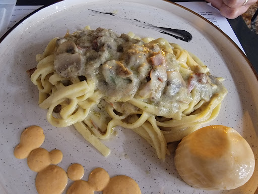 Read moreIncuriositi dal nome di questa attività, ci siamo accomodati all' interno di un locale carino.Abbiamo ordinato un primo piatto " carbonara di mare" ed un insalata con scampi,valeriana,lattuga e altro accompagnata da una "piadina calda" e 2 birre weiss.Ci sono stati serviti un piatto con un panino raffermo scavato con due e dico due forchettate di tagliolini con 6 cozze posti all'interno del panino(sapore discreto ma quantità inaccettabile) ed un insalata di una freschezza discutibile parecchie foglie di insalata appassite e triangoli di piadina fredda posta all interno dell' insalata servita in una insalatiera di plastica 😯😯.Il cameriere mentre portava via il mio piatto e l insalata non consumata ha chiesto " tutto bene??".Ho fatto presente il tutto,ma non ha battuto ciglio,rispondendo che le quantità erano giuste ,è l'insalata era normale che si presentasse così.Ho chiesto il conto e alla cassa mi viene richiesto " tutto bene ??"Ho replicato dicendo " ho fatto presente il tutto al suo collega ".Non ho avuto modo di parlare mi ha risposto.Senza minimamente preoccuparsi di cosa fosse accaduto mi ha presentato il conto.Concludo che la professionalità qui non è di casa.Mi dispiace,ma...