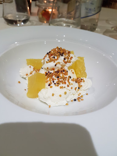 Read moreNuovo locale, nuova cena e nuova recensione. In compagnia abbiamo provato il locale per una cena conviviale. La struttura è piacevolmente arredata, un bel bancone all' ingresso e nella sala da pranzo appena si entra si può vedere un angolo cantina molto ben fornito di vini di varie tipologie. Ottima la disposizione dei tavoli non addossati tra loro e con ampio spazio a tavola per i commensali. Da notare anche il servizio, veloce, cortese e con il cambio delle posate ad ogni portata, un tocco di classe. Ogni portata era raccontata dal proprietario che con passione e cura ne descriveva le caratteristiche e le origini del prodotto Per antipasto ho provato i fiori di zucca ripieni di ricotta con pomodorini in abbinamento, un fiore di zucca presentava uno stame all' interno e come gusto personale l' ho trovato un poco debole, bell'impiattamento e assai adeguato come quantità. A vista per quanto han preso le altre persone sul tavolo sembrava ottima la carne del vitello tonnato e di quella della tartare che proverò in un altra occasione. Il primo erano i ravioli con pasta fatta in casa con ripieno di anatra e condimento di funghi purtroppo i funghi li ho trovati anonimi. Veramente buono il dolce, molto gustoso e con una bella presentazione, era un gelato alla crema fatto in casa con dell'uva passa e vermouth con caffè in riduzione e del biscotto...