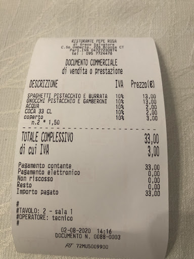 Read moreUn bel giorno Encelado, fratello maggiore dei giganti, decise di compiere la scalata al cielo per togliere il potere a Giove e comandare in sua vece (...) erano quasi arrivati al trono di Giove quando questi, irato per tanta arroganza, scagliò con la sua possente mano un fulmine che infiammò il cielo e raggiunse i giganti accecandoli e rovesciandoli a terra violentemente (...) Encelado, ridotto a pezzi, restò sepolto sotto l'Etna. Cominciò a buttare fuori dalla bocca fiamme, faville, fumo e brace, che salirono fino al cucuzzolo dell'Etna, da cui uscirono emettendo un rombo violentissimo. (...) ... le colate di fuoco resero aride e sterili tutte le terre attorno, ma il tempo e la caparbietà dei brontesi resero quel luogo inospitale e brullo la capitale mondiale del pistacchio di qualità. Sicuramente andando a mangiare presso il ristorante il PEPE ROSA è possibile assaporare tutto il calore ed il sapore delle terre dell'Etna. L'ambiente molto ben curato, pulito e caratteristico dove si sprecano marmi in pietra lavica. La cucina è stata molto ricercata tenendo salda tradizione e qualità. Eccellenti sono stati i piatti a base di pistacchio come i ravioli (da provare) ottime le carni alla brace accompagnate da un corpulento vino rosso locale. Da sottolineare il buon profumo del pane accompagnato da un ottimo servizio. Ovviamente dopo un pranzo di questo tipo ci si aspettano le dolenti note quando arriva il conto ma questo, invece, non è stato sopra le righe tenuto conto della qualità, quantità e ottimo sapore....