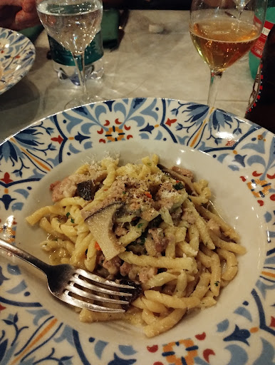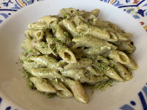 Read moreMi aspettavo di più da questo posto, ma nella realtà dei fatti son rimasto molto deluso. Personale gentile e disponibile durante la prenotazione telefonica. Il locale risulta essere molto grazioso e pulito ma il servizio è migliorabile sotto tanti aspetti come anche la cucina. Nessuno dopo averci fatto accomodare ci ha chiesto se volessimo bere ma siamo stati noi a dover chiamare il cameriere dopo oltre 10 minuti per chiedere dell'acqua. Al momento dell'ordinazione nonostante non fossimo intenzionati a prenderne, ci è stato detto che non avevano più bruschette nonostante fossero soltanto le 21, ma stranamente fino alle 23 circa ora in cui abbiamo lasciato il locale continuavano a servire bruschette ...chissà come mai. Si denota una ricerca degli ingredienti infatti vengono serviti solo piatti di stagione, ma non sempre la selezione significa servire un buon piatti. Abbiamo ordinato dei primi con verdure di stagione e pomodorini secchi. Porzione misera e pasta veramente orribile, capisco la verdura di stagione avesse un gusto amaro ma il piatto non aveva nessun equilibrio si sentiva solo l'amaro della verdura in contorno a una pastasciutta con qualche pezzetto di pomodoro. Un primo di pasta al pistacchio, buono ma senza lode. Ottima invece la crepe e il gelato a pistacchio. Servizi molto lento ma ci avevano avvertito che in cucina avevano dei rallentamenti. Resta il fatto che se fai il cuoco o lo chef o gestisci una cucina, non puoi presentare quei piatti o avere la cucina incollata dopo 30 minuti che ti inizia...