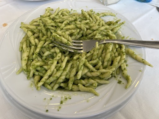 I unbuttoned my pants and exhaled Basta, Basta. I was full, there was no room left for another bite of anything. The server laughed at me. Basta? BASTA? how could one simple bowl of pesto pasta fill you up? I was on a motorcycle ride around Europe during the summer of 2023 and was directed to have lunch here. The place was full of people and only one couple were able to help me with Italian translation but that was all I needed. I loved the food and the people....