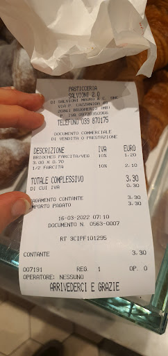 Commento finale: Pasticceria a Brugherio. Personale gentile e preparato. Prodotti che si distinguono dagli altri e qualità alta. Prezzi di fascia media rispetto a Milano. Un punto da prendere in considerazione per qualcosa di diverso dal solito.