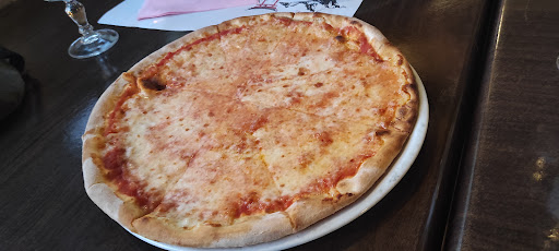 E' un ristorante/pizzeria cinese. Avete presente il classico piatto per pizza piatto e coi bordi? La pizza e' decisamente piu' grande ancora. In compenso e' molto sottile e croccante, ma questa e' proprio la pizza che piace a me, che aborrisco l'impasto crudo e gommoso che va ormai nella maggior parte delle pizzerie. Il rapporto base/condimento e' giusto, senza eccessi. Senza eccessi anche i prezzi, non e' la pizzeria piu' economica ne' tanto meno piu' costosa che conosco. Una certa scelta di vini e birre (Moretti da 66 a 3 eur) fa tenerezza la mezza minerale a 1eur, hanno imparato dagli italiani a mettere il coperto, nel caso della pizza una pura e semplice...