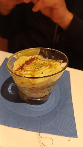 Very well maintained restaurant. Beautiful decor and great service. Ordered * Home-made pasta "Strozzapreti" with prawn, chery tomatoes, and saffron cost Euro 18. Dish taste and presentation were very good. Potion was also huge , it came with bread. Order white wine ViniCaraffa 1/4 litro cost Euro 3 went well with it. Staff is very nice and helpful....
