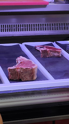 QUALITA'. il locale era sicuramente una macelleria paesana prima che si spostassero in zona "Shoppin", locale piccolo, una trentina di posti a sedere, sotto alla rotaia guidovia appesa al soffitto (dove appendevano le mezzene) hanno trovato posto i tavolini, il bancone frigo con esposte le bistecche per la scelta diretta del cliente assieme alla bilancia usata per dimostrare il peso dell'acquistato, il pavimento e le pareti completamente in marmo oltre alla oggettistica tipica ... beh era la macelleria del paese! Bella l'evoluzione assieme alla passione! Ci accoglie LUI in sala, espansivo e disponibile, LEI gentilissima e attenta. La scelta della bistecca alla carta si potrebbe implementare un poco con le spiegazioni di tagli frollatura ecc.. però c'è il bancone e li è amore a prima vista! Più semplice la carta dei vini... non c'è... sono tutti esposti su un ripiano alle spalle dei commensali! Prezzi dei vini secondo me adeguati, ti vien voglia di portarne uno personalmente al tavolo. E' quest'aria di tratto-risto-self che è magica! Ci è piaciuta molto. La qualità della fassona piemontese con burro chiarificato e rosmarino ha un gusto favoloso oltre alla morbidezza giusta. Crostata alle mele veramente top! Spessa il giusto, mele pinoli uvetta ad hoc. Ora nn stupitevi dei prezzi al kilo perché come al solito la qualità si paga.... Per la carne è un punto di riferimento da marcare! Bravi mi aspetto qualche...