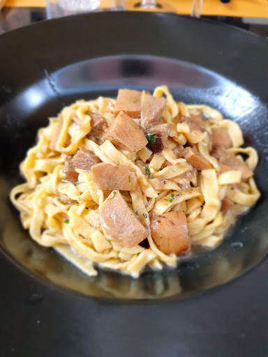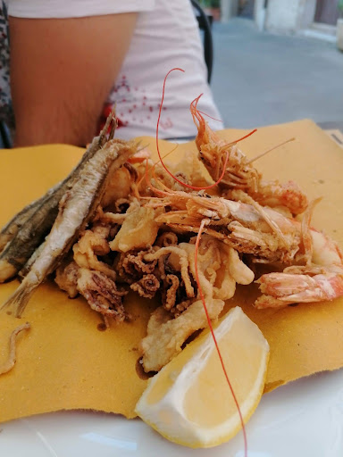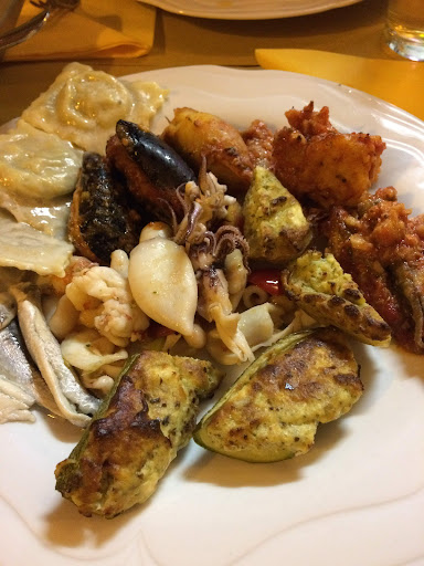 We accidentally ended up here, not sure if this was a restaurant or a delicacy store. We asked and the answer was 'sure, but instead of keeping our fridge in the back, we display it'. The gastronomia (as it is apparently called) is small but nice, and you can take away the delicious freshly made dishes and bites, or you can pick a table and have a nice warm meal. We had an assortment of seafood (stuffed squid, stuffed mussels, squid salad, fried fish, fried anchovied), vegetables (e.g lovely stuffed zuchini) and the most delicious fresh made ravioli with sage butter. They were made by the very nice lady serving us, who told us she shares the kitchen with her mother in law, who makes the seafood. After finishing our lovely meal we took a look at the local produces they also sell, and bought a really nice biodynamic wine. We were really happy to have stumbled upon this gastronomia, it was the best meal we had in the region! And for a very...