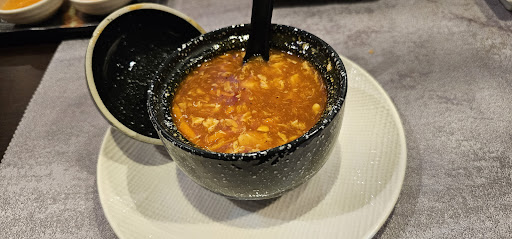 Il cibo è molto buono, fatto al momento invece del solito buffet. La parte della cucina che si occupa del sushi/piatti freddi è vicino ai tavoli, dando la possibilità ai clienti di poter vedere come lavorano e le materie prime che usano.