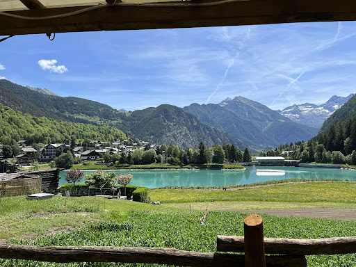 Agriturismo dal Pioppo: posizione spettacolare sul laghetto di Brusson, con parecchi tavoli all'aperto, protetti da tettoia o teli. Conduzione familiare. Menu a base di polenta (liscia o concia) abbinata a carne di manzo cucinata in vari modi: spezzatino (che però era finito), polpettine, ossobuco. Standard l'antipasto misto della casa (mocetta, formaggi, frittatina, insalata di cavolo). Dolci della casa buoni, porzioni non molto grandi ma è tipico della zona. Gnocchi al Blue d'Aosta giudicati molto buoni, così come la polenta concia. Invece io la polenta liscia con polpettine non sono proprio riuscita a mangiarla: polenta dal gusto molto amaro (forse perché integrale? Era di un giallo pallido con molti puntini neri), polpettine asciutte e insipide (forse sarebbe bastata un po' di salsa di pomodoro o un intingolo qualsiasi). Chi ha preso l'ossobuco ha mangiato solo il midollo, che era abbondante, e non è riuscito a mangiare la carne che era dura e stopposa, forse cotta troppo; in questo caso l'intingolo c'era, ma non sapeva di niente. Sto cercando di fare una critica costruttiva, perché mi rendo conto dell'impegno che ci vuole a portare avanti un posto così. Forse assaggiare un po di più i piatti per capire se sono a posto come sapore e consistenza, e aggiungere qualche proposta vegetale: verdure grigliate, torte salate che si possono preparare prima... immagino che un posto così possa facilmente tenere un orto. È comunque uno dei pochi posti a Brusson dove si possa andare a mangiare qualcosa, in generale il paese offre poche alternative; se ci fosse più scelta nel menu, si potrebbe...