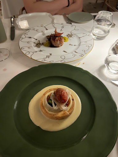 Recently, we took a drive through the Tuscan countryside outside our town to San Pancrazio, a pretty hamlet overlooking the Ambra Valley along the road leading to the great medieval city Siena. Our stop was Palazzo Tiglio, an upscale restaurant, recently opened, situated on the ground floor of an historic palace perched on the edge of the village that's been lovingly restored down to the smallest detail. Down the small stone pathway, one steps out onto an large stone terrace with a pretty vista and ringed with aromatics. To the right, French doors open into the dining room – actually several light-filled, airy rooms sprinkled with contemporary art and large-scale photographs depicting nature. Rather than the five-course tasting menu, my dining companions and I opted for the à la carte menu, just the right quantity of tempting dishes to please an array of different palates and preferences. A refreshing sparkling wine enjoyed with a trio of small bites – I especially loved the sweet-savory burst of a creamy paté encased in a dark chocolate shell – was a welcome preview to the next courses. As a starter, I chose the the scallops in beurre blanc, zucchine, edamame and samphire, an aromatic plant within the parsely family. Delicious bites that were creamy, buttery balanced with the saltiness and the scallops' retro sweetness. Their pillowy texture coupled with the edamames' pleasant crunchiness was so perfect and flavorful, it left me wanting for more. But, the main course awaited. Most opted for the Beef Wellington (for two). The meat was soft, tasty, and beautifully presented at table. Two of us chose the turbot, a European flatfish, that was juicy and perfectly cooked . The fish's crispy outer skin played nicely against the pillow of rich and creamy mashed potatoes (one of my preferred foods that I would take with me on a deserted island) flecked with chives.The just-right portions meant dessert was to be a shared experience. I took a few bites of a praline feuillantine, white chocolate Namelaka, in Japanese the term means extra creamy, topped with lemon gel dollops and a sprinkle of rosemary leaves. In a few words: perfectly scrumptious, and I appreciated that the dessert's creaminess continued as a theme, at least for me, that evening. Naturally, wine was consumed, one of which was from Palazzo Tiglio's carefully curated wine cellar, a Nuits-Saint-Georges 2018, made with Pinot Noir grapes from Domaine Defouleur. Delicious and perfect accompaniment for our late summer repast. Make no mistake: this is an elevated experience, one to savor and linger over – from the beautifully appointed table settings, Emily Post would be proud, set against crisp white tablecloths to the minimalist décor and ample room between tables for intimate conversation. High compliments to restaurateur John Werich who had a vision for an elevated dining experience in this corner of Tuscany, and to Palazzo Tiglio's inventive executive chef, Mattia Parlanti who is creating some exciting dishes that delight the palate and the eye. At this level of innovation, warm hospitality, presentation, and taste, my thought is that Palazzo Tiglio will become a favorite among locals and visitors alike to this lovely hillside village that now boasts one of the best restaurants in this corner of Tuscany. Highly...