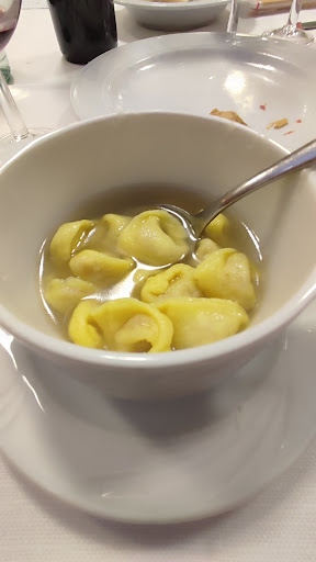 Read moreCuriosando tra recensioni e commenti, alla ricerca di un locale "del posto" che non subisse troppa influenza commerciale, decidiamo di fare una piccola deviazione sulla strada del ritorno per pranzare in questa trattoria. Abbiamo sicuramente fatto centro! L'antipasto: crescentine (simil gnocco fritto) e salumi tagliati a coltello da un carrello vicino al tavolo del cliente. Si può scegliere tra tutto quello che offre la tradizione emiliana (ciccioli freschi e frolli, coppa di testa, etc. etc.), variando al momento qualità e quantità degli affettati proposti. Personalmente ho gradito molto questa tipologia di servizio. Tra i primi, anch'essi fedeli alla tradizione, abbiamo scelto di dividere una porzione di gramigna alla salsiccia, sulla quale viene grattugiato -su richiesta del cliente- del Parmigiano direttamente dalla forma, al tavolo. La cottura della pasta era perfetta e il sugo cremoso e gustoso. Come secondo abbiamo scelto dal carrello di bolliti e arrosti il misto di bolliti: un vero capolavoro di gusto accompagnata da un'ottima presentazione da parte del personale che descrive accuratamente le operazioni di preparazione del piatto. Dal carrello dei dolci abbiamo scelto, infine, un tris per assaggiare le varie specialità locali quali torta di riso e zuppa inglese.