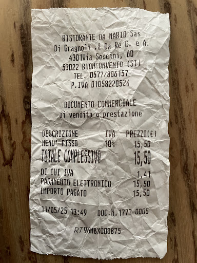 Read moreSono tornato al Ristorante Da Mario a Buonconvento dopo dieci anni, spinto da un bellissimo ricordo: una Fiorentina impeccabile, cucinata alla perfezione, gustosa, succulenta, accompagnata da un servizio caloroso e attento. Quell'esperienza rimase impressa nella mia memoria come una delle migliori mai avute.