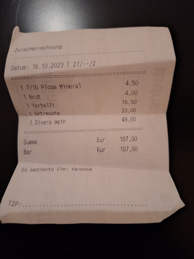 Read moreEnttäuschend war der Abend. Damit der Leser weiß,dass wir tatsächlich hier waren, die Rechnung anbei. Der Reihe nach: meiner Frau wurde bei der telefonischen Reservierung ein 'kleiner'Tisch angeboten. Ansonsten wäre nur noch ein zeitlich begrenzter (ca.1Std) Tisch verfügbar. Nun der kleine Tisch befand sich im Eingangsbereich und Zwischengang zu den beiden Gaststuben.Wenn die Dame am Telefon dies etwas genauer beschrieben hätte, wäre unsere Entscheidung wahrscheinlich anders ausgefallen. Aber Schwamm drüber. Was allerdings kaum akzeptabel ist, folgte dann.Ich kann ja verstehen, wenn das Personal Flaschen aus dem Kühlraum holen muss.Wenig Verständnis habe ich allerdings dafür,dass der zahlende Gast als Türsteher agieren darf,weil die Mitarbeiter nicht in der Lage waren, die Türe hinter sich zu schließen und die Gäste dann im Zug saßen.Da fehlte es schon an jeglicher Aufmerksamkeit für den Gast.Und da diese Aktion nicht nur einmal sondern insgesamt vier Mal erfolgte,kann man nur von totalem Desinteresse ausgehen. Das manche Gäste ebenso Probleme hatten,die Eingangstüre hinter sich zu schließen,sei nur am Rande erwähnt. Leider war das nicht der Höhepunkt der schlechten Erfahrung. Nachdem wir mit Brot und Wasser erst einmal zufrieden waren,fragte ich nach der Weinkarte.Warum diese dem Gast nicht direkt mit der Speisekarte übergeben wurde erschließt sich mir auch nicht.Unglücklicherweise erschien die Dame,die uns bediente genau in dem Moment als ich den Mund voll hatte,um die Weinbestellung aufzunehmen.Also wurde Sie gebeten, in Kürze noch mal nachzufragen. Die nächsten zehn Minuten wurden wir dann ignoriert,bis sich die Empfangsdame dann erbarmte und unsere Weinbestellung aufnahm. Die beiden georderten Gerichte waren sowohl vom Geschmack als auch von der Qualität 4*wert. Bedient wurden wir dabei von der Hausdame und einer anderen Bedienung. Erläuterungen, was sich auf den Tellern befand-wie bei anderen Gästen üblich- erfolgten nicht. Da der Verfasser dieser Zeilen es grundsätzlich so hält,dass er Dinge anspricht,habe ich unserer ursprünglichen Bedienung gesagt,als Sie mich fragte,ob es 'gepasst' hat,was mir missfallen hat.Leider fing die Dame dann an,mit mir zu diskutieren. Tenor:Sie hätte noch andere Tische zu bedienen,es sei hektisch und als Höhepunkt dann ,sie könne sowieso nicht verstehen, warum der Tisch uns angeboten worden ist. Ein Grappa oder ähnliches zum Trost wurde natürlich auch nicht angeboten. Nun denn,es war ein enttäuschender Abend, zumal uns das Lokal von unseren Gastgebern in Südtirol(aus der Spitzengastronomie) wärmstens empfohlen wurde. Also niemals einen 'kleinen' Tisch akzeptieren,wenn der dem geneigten Leser...
