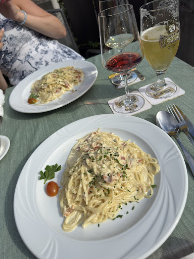 Es ist ja schwer eine Spaghetti Carbonara zu finden im Dorf Tirol. Hier wird sie angeboten - also fast ein Alleinstellungsmerkmal. Und wir sind immer noch in Italien - aber dann wird Carbonara mit Sahne gemacht? Ernsthaft? Der Geschmack lies insgesamt sehr zu wünschen übrig, erinnerte an ein Nudeln in Sahnesauce für Kinder. Das war echt nichts...