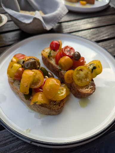 Wir kamen zum Mittagessen hier her und wurden herzlich empfangen. Nach kurzen studieren der Karte haben wir uns für zwei Pizzen als Hauptspeise und Pasta als Vorspeise entschieden. Die Pizzen werden vor den Augen der Gäste in einem Holzofen zubereitet. Alle Gerichte waren hervorragend! Sehr positiv überrascht waren wir vom Brot, welches zum Essen gereicht wurde: super lecker und schmeckt wunderbar. Ein Sauerteigbrot mit Zwiebeln und Möhren, welches der Chef jeden Morgen selber backt. Sehr zu empfehlen mit dem Chili-Öl welches an jeden Tisch gebracht wird. Nach unserem Lob an die Küche, bekamen wir zwei kleine Brote mit für unsere Weiterfahrt 😁