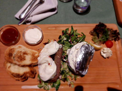 Alles um: Das Essen modern aber, zumindest Fleisch und Pommes, sind undefinierbar überwürzt. Hier bitte drüber nachdenken auf Salz und Pfeffer umzusteigen. Ambiente modern, Anrichteweise modern (mir zu wenig pur und zu viel schnickschnack, lieber weniger ist mehr).