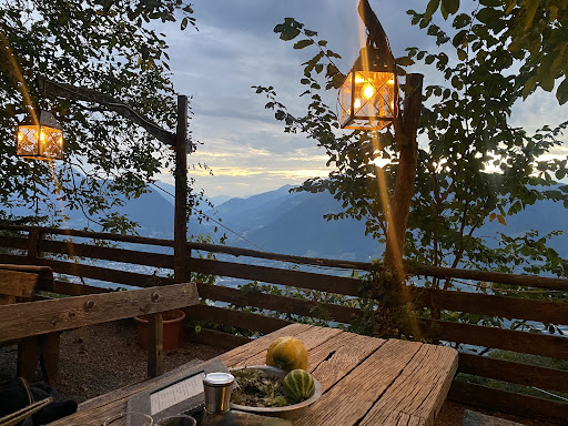 „Nachteil“, der wunderbaren Aussicht ist lediglich die recht lange Anfahrt aus dem Tal von ca. 25 Minuten mit dem Auto über eine sehr enge Straße, was jedoch regional bedingt nachvollziehbar ist - dies muss jedoch in die Planung der Ausflüge der schönen Umgebung eingerechnet werden. Wer Ruhe, Ursprünglichkeit und regionale Küche sowie Natur und Nachhaltigkeit sucht, wird hier voll auf seine Kosten kommen. Regional bedeutet jedoch auch, dass die Speisen in der Regel vorgegeben sind und man nur selten a la carte bestellen kann. Alle Getränke sind Hausgemacht, wer Pommes, Cola oder andere Getränke „von der Stange“ sucht, wird hier nicht fündig werden - was wir jedoch als Pluspunkt und Alleinstellungsmerkmal werten - dessen muss man sich nur bewusst sein.