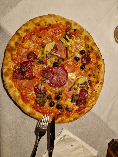 Read moreWir haben die Pizzeria aufgrund der vorhandenen Bewertungen ausgesucht und wurden leider etwas enttäuscht. Bedienung sehr schnell und freundlich, als Vorspeise hatten wir einen gemischten Salat und Bruschetta. Salat war frisch und in Ordnung. Bruschetta nichts Besonderes. Tomaten hatten sehr wenig Geschmack, dazu noch sehr wenig Gewürz und somit eher geschmacklos. Die beiden Pizzen kamen ebenfalls sehr schnell, aber auch diese waren eher geschmacklos und das, obwohl ich eine Pizza mit „scharfer“ Salami bestellt hatte. Boden der Pizza sehr lecker und knusprig, belegt war die Pizza eher dürftig. Was uns aber während dem Essen erschreckte war, dass in sämtlichen Ecken und Rändern, an den Fenstern und hinterm Vorhang Spinnweben hingen, Spinnen unterwegs waren und selbst mitten im Raum an der Decke hingen Spinnweben. Erst dann realisierten wir das alles in allem wohl nicht so viel wert auf Sauberkeit gelegt wird. Preis-Leistungs-Verhältnis na ja, wir werden eher nicht...