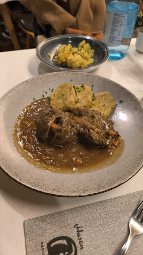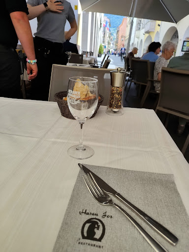 Read moreDas Hasen Jos liegt perfekt gelegen in der Altstadt von Meran, in einem wunderschönen Laubengang. Das Restaurant ist sehr gut mit dem öffentlichem Verkehr erschlossen, die Bushaltestellen sind in 5 Gehminuten erreichbar. Wer mit dem Auto anreist, dem stehen ebenfalls in wenigen Gehminuten Entfernung, kostenpflichtige Parkhausparkplätze zur Verfügung. Das Lokal bietet Innen- und Aussensitzplätze an, eine Reservierung war nicht nötig. Die Einrichtung ist schlicht und funktional. Das Personal war freundlich und speditiv unterwegs. Die Karte bietet eine genügend grosse Auswahl an Köstlichkeiten. Das bestellte Essen war gut, alles hat wunderbar geschmeckt. Die Portionen sind eher klein. Das Preisniveau für die Speisen und die Getränke bewegen sich im mittlerem Preisgefüge. Achtung das Besteck (Coperto) wird separat verrechnet. Die Toiletten waren nicht sauber, hier besteht eventuell...
