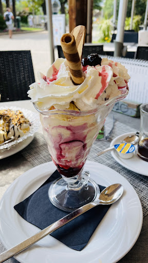 Der Melonen-Eisbecher war zwar sehr groß, aber für den hohen Preis auch nichts besonderes. Meine Apfelschorle war grauenhaft. Statt ein Glas Wasser wie bestellt, bekamen wir eine ganze Flasche. Als wir dann statt einer Flasche doch noch ein Glas bekamen, wurde fast der Preis von der 0,75 l Flache berechnet. Eigentlich kein Wunder, dass hier so viel schief läuft, wenn der Kellner weder Deutsch noch Italienisch spricht. Definitiv unser letzter Besuch. 22.07.2025 zwischenzeitlich wurde das vorherige Giardino von Römerkeller übernommen ;ein Großunternehmen im Meraner Raum. Also ein neuer Versuch meinerseits und diesmal mit Gästen aus Deutschland. Eigentlich hätten wir uns schon gar nicht an diesen verschmierten Tisch mit Schmutzresten vom Vorgänger setzen sollen. Es hat sich trotzdem so ergeben. Wir bestellten jeder einen der sehr angepriesen Cocktails, außer mir, ich nahm einen ganz einfachen Hugo. Das war dann auch das Beste. Die Hälfte unsere Bekannten hat den Cocktail stehengelassen und der Rest offensichtlich nicht mit Freude zumindest zur Hälfte geleert. Der sehr unmotivierte afrikanische Kellner arbeitete in seinem ganz eigenen Tempo und war leider auch keiner der hiesige Amtssprachen mächtig. Englisch haben wir nicht überprüft. Schade, die Lage des Lokals ist gut, wir werden aber doch lieber in Zukunft daran vorbeigehen und...