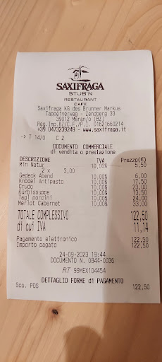 Saxifraga is our favourite restaurant in Merano! The food is excellent, with high quality ingredients mostly from the region. The service is outstanding, the owner both are personally involved, and the entire team provides an absolute positive atmosphere. The view from the terrace above the city is spectacular, every time there is a different natural spectacle in the skies above the mountains. Important to mention that you have to walk to the restaurant, it’s not possible to directly reach it via cars. However, the walk is easy - either appr 20 min. from Merino via the Trappeiner Walk or just 9 min. taking 102 steps from the Duomo up to the restaurant. Depending on how many glass of wine you have consumed you might want to consider the way back to the city 😅 If you want to go by taxi there is the opportunity to go to a place closer to the restaurant and then walk appx 10 minutes. The locals should know where...