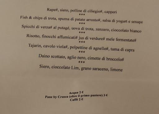 Read moreÈ un luogo che definire incantevole è riduttivo. L'antico insediamento di montagna è stato recuperato e riconvertito in ristorante utilizzando materiali recuperati in loco. Legni è pietre, sono stati sapientemente ricollocati in un'armonia e secondo le logiche dell'architettura di alta montagna, sobria, elegante, funzionale al clima e rispettosa dell'ambiente. Lo Chef stellato Yuri Chiotti, amalgama sapientemente prodotti del territorio, autoprodotti che esalta nel gusto e nella presentazione. I vini sono eccellenze sorprendenti del territorio piemontese. Piero Primatesta ne cura la scelta ne illustra le qualità. Vini che testa, tutti, personalmente. Due le scelte proposte dalle quali è possibile estrapolare e personalizzare abbinamenti. Unicità e armonia in mezzo ai boschi con un'atmosfera di pace che ti...