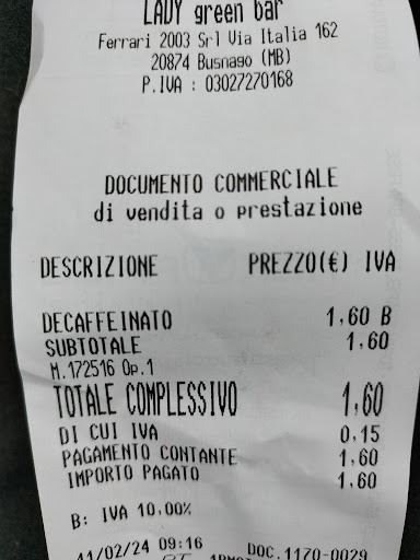 Read moreHo recentemente visitato il Lady Green Bar e devo dire che è stata un'esperienza davvero piacevole. Il cibo è semplicemente eccezionale; ogni piatto che ho provato era preparato con grande attenzione ai dettagli e ricco di sapori. Il locale è molto accogliente, perfetto per una serata trascorsa in compagnia di amici o per una pausa rilassante. Gli arredi creano un'atmosfera calda e invitante, che ti fa sentire subito a casa. Inoltre, la musica di sottofondo è stata una piacevole sorpresa: selezioni curate che hanno reso l'atmosfera ancora più piacevole senza risultare invadenti. Un altro aspetto che merita di essere evidenziato è il personale. Ogni membro del team è stato simpatico, competente ed educato, pronto a soddisfare ogni mia richiesta con un sorriso. Questo ha reso la mia esperienza ancora più memorabile. In conclusione, consiglio vivamente il Lady Green Bar a chiunque desideri gustare del buon cibo in un ambiente accogliente, servito da un personale impeccabile. Non vedo l'ora...