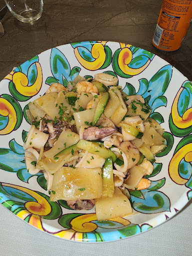 Read moreSiamo andati a cena, due forchette su tre erano sporche e purtroppo anche il cibo è stato deludente: ho chiesto un calice di vino, e cercato di chiedere che vino avessero ma il cameriere ha detto “faccio io” e mi ha portato un vino moto s carso, o comunque un vino che sicuramente non avrei scelto, che quando non era più fresco non sono riuscita a finire. L’impepata di cozze era con poco pepe e con le vongole, dei tre piatti che abbiamo preso si sono salvati gli spaghetti alla chitarra con crema di zucchine, scampi e gamberetti che erano effettivamente molto buoni, la tagliata di pesce era scaldata al micronde, e un po’ insipida, e gli spaghetti alle vongole erano con la sabbia. I dolci erano troppo zuccherati per i nostri gusti, ma immagino sia una questione di preferenze personali, la cosa positiva è che li fanno loro, il caffè era buono. La cosa più fastidiosa è stata la questione del vino, perché il cameriere ha dato per scontato che non capissi niente di vino, mentre ho dei gusti ben precisi, e avrei preferito non prenderlo piuttosto che bere quello, se avessi saputo che era alla spina semplicemente avrei preso altro, il calice ci è costato ben 6€ nonostante non...