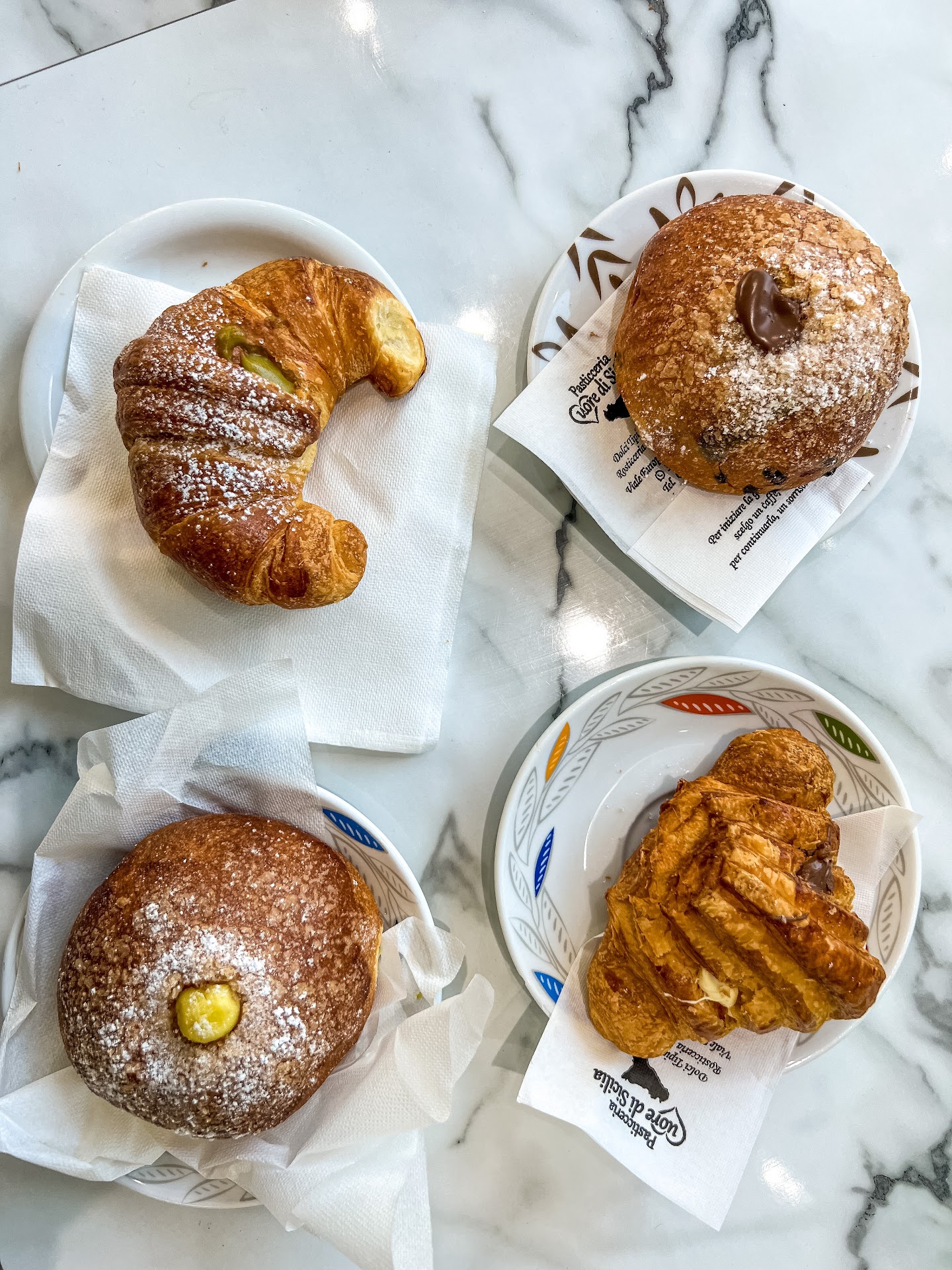 C’è l’imbarazzo della scelta per quanto riguarda i prodotti di pasticceria: brioches vuote, integrali, vegane, ripiene (marmellata, ricotta, pistacchio, cioccolato..), bomboloni al forno, prodotti fritti….ma anche mini pasticceria e dei gustosissimi cannoli (davvero enormi e super ripieni di ricotta!)….insomma, ce n’è davvero per tutti i gusti! 🤤