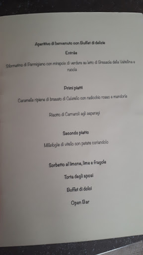 Sono stata ieri per un matrimonio. Struttura molto carina in una posizione che offre comodi parcheggi (peccato per la ferrovia molto vicina).. buffet di benvenuto ricco e molto buono... tutto il menù era buonissimo... ho trovato solo due note negative ma molto personali quindi in realtà era veramente tutto ottimo: nell'antipasto (dove si trovava la bresaola)mancava un filo d'olio o il burro.. e nei primi le caramelle ripiene di brasato di culatello con ranocchio rosso e mandorle... c'erano pezzi di mandorla duri che non ho capito se eran gusci... ma amche fosse può capitare... riaotto agli asparagi buonissimo da fare il bis... ceemoso gustoso... tornerei oggi per quello! E anche per le mille foglie di vitello... squisita! Veramente buonissimo! Sorbetto al limone lime e fragole molto buono e originale e infine buffet di dolci che dire eccezionale soprattitto le mini sacher! Non ero mai stata a mangiare in questo ristorante ma penso possa rientrare tra i preferiti della...