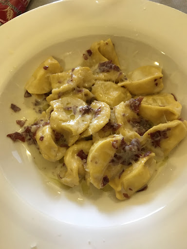 Read moreFortuna ha voluto che abbia trovato disponibilità per un tavolo per due pur chiamando verso mezzogiorno di oggi domenica 17 ottobre. E sì, ho davvero avuto fortuna, in questa storica trattoria della bassa, alle porte di Busseto, è bene prenotare per tempo se si vuole gustare salumi prelibati quali culatello, spalla cotta servita calda, prosciutto e salame, tutti di loro produzione e lungamente stagionati nelle cantine della canonica settecentesca del Santuario Mariano prospiciente alla trattoria . Il menu propone piatti tipici del territorio ed è difficile scegliere quali gustare. Per secondo ho optato per la coscia di anatra croccante con patate al forno. Lista dei vini ampia e prezzi più che onesti. Ahh, potessi trasferirvi ora quei profumi e quei sapori... purtroppo le tecnologie ancora non lo permettono, ma forse è un bene, così che l'unica è andarci e scoprire la cortese e accogliente...