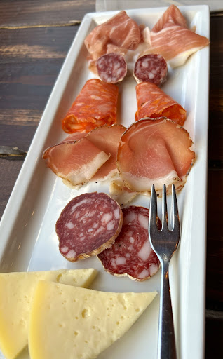 Locale nei pressi di Bussi paese. Dall’esterno sembra apparentemente piccolo ma internamente lo troviamo svilupparsi su due livelli con la possibilità di accomodarsi sia al suo interno che in veranda godendo del panorama montano. Un menu coinciso con piatti selezionati per dare maggior cura ad ognuno di loro. Per quanto riguarda il cibo preferisco assegnare 4 stelle, non per la sua qualità, che devo dire fosse davvero ottima, ma per la sua quantità in particolar modo per l’antipasto di salumi e formaggi per due persone che ho trovato un po’ povero, con una selezione forse poco esaustiva. A seguire una decina di arrosticini di carne, belli saporiti per esaltarne il sapore, delle patatine fritte davvero croccanti ed una pinsa romana mortadella, bufala e pistacchio (consiglierei di aggiungere una salsa al di sopra che possa legare l’intero piatto dando un gusto più completo e avvolgente). Per chiudere la serata in dolcezza abbiamo ultimato con una porzione di tiramisù. Servizio veloce e personale accogliente hanno accompagnato la serata. Come rapporto qualità prezzo possiamo dire di essere nella media. Noi personalmente abbiamo prenotato con TheFork riservandoci così un buon sconto sulla cena. Sicuramente un locale tranquillo nel quale poter...