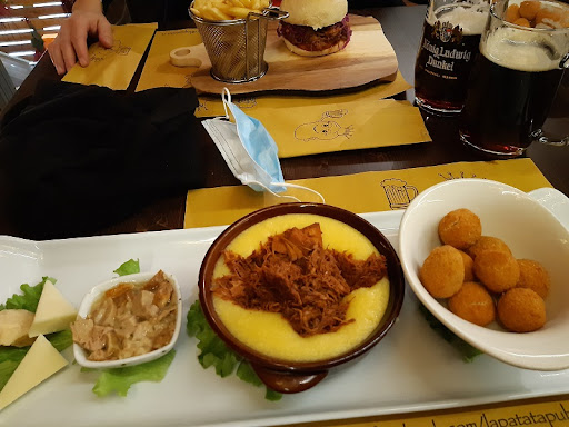 Io ho preso una picanha di black Angus. Bellissima da vedere, 400gr di pura bontà! Cotta perfettamente ma era tiepida, un po' come se fosse stata cotta 10 Min prima e poi servita. Nel piatto c'era anche un carciofo che non mi ha entusiasmato. In un locale il cui motto è: "La birra è eccezionale ma è la patata che fa la differenza", non ti aspetteresti mai di trovare le patate al forno con buccia servite FREDDE e cotte come se fossero lesse e per nulla saporite. Assurdo ma sono rimasto deluso dalla Patata! Anche quelle fritte con i panini non erano il massimo ma almeno era calde, davano l'idea di patatine appena fritte. Comunque sbirciando nei piatti che portavano i camerieri penso che tutto sommato si mangi bene e che sia stato solo un caso...
