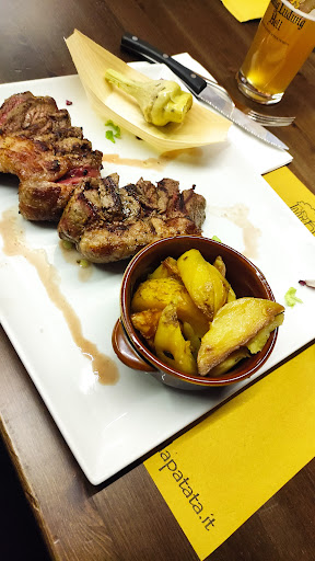 Io ho preso una picanha di black Angus. Bellissima da vedere, 400gr di pura bontà! Cotta perfettamente ma era tiepida, un po' come se fosse stata cotta 10 Min prima e poi servita. Nel piatto c'era anche un carciofo che non mi ha entusiasmato. In un locale il cui motto è: "La birra è eccezionale ma è la patata che fa la differenza", non ti aspetteresti mai di trovare le patate al forno con buccia servite FREDDE e cotte come se fossero lesse e per nulla saporite. Assurdo ma sono rimasto deluso dalla Patata! Anche quelle fritte con i panini non erano il massimo ma almeno era calde, davano l'idea di patatine appena fritte. Comunque sbirciando nei piatti che portavano i camerieri penso che tutto sommato si mangi bene e che sia stato solo un caso...